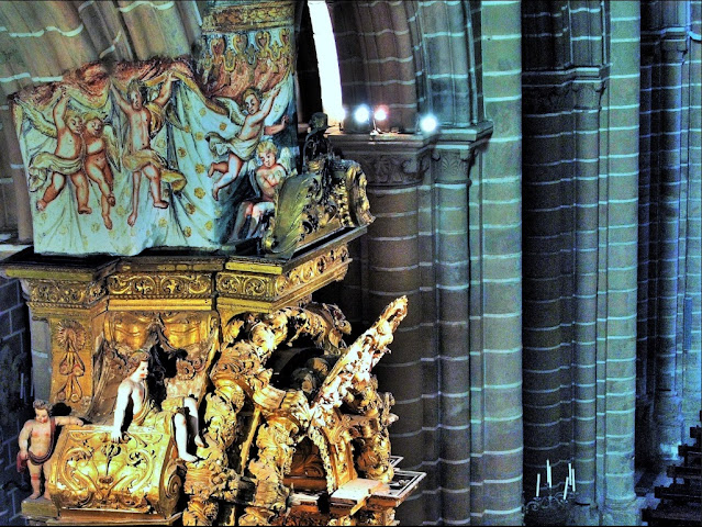 the 17th-century reliquary of Santo Lenho (holy wood), supposedly containing pieces of Christ's Cross, of gilded silver and polychromed enamel, encrusted with 1426 true gems (840 diamonds, 402 rubies, 180 emeralds, two sapphires, one hyacinth, and one cameo).